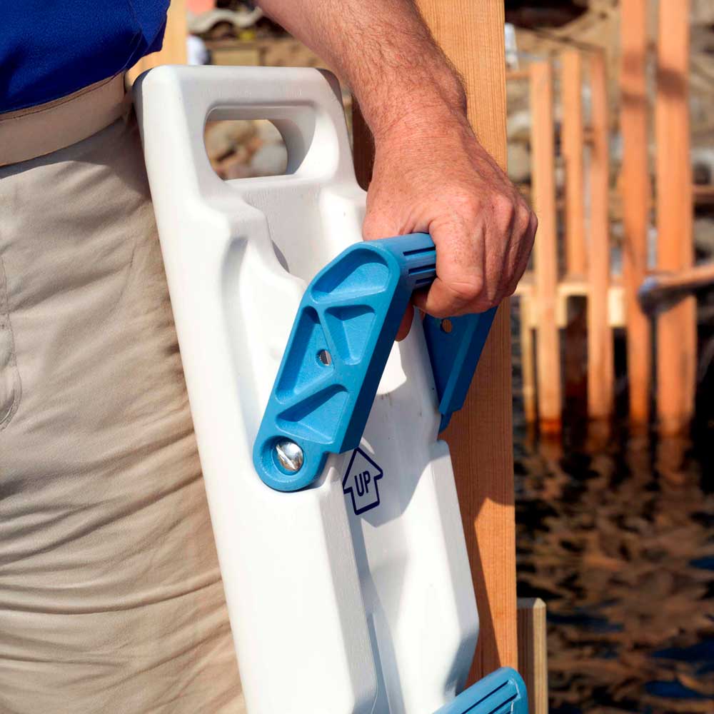 - Two handles either fold down for temporary post mounting and fold up for easy on-board storage